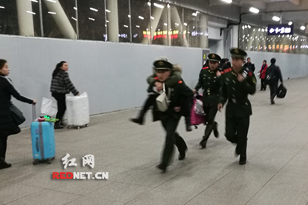 情急之下,房启明联络附近执勤的战友,提起行李,背着患者就向站外跑去。几人从旅客通道一路逆行,边跑边通过对讲机呼叫正在火车站前备勤的巡逻小组,准备车辆送病人前往医院急救。在官兵们的通力合作下,短短5分钟,病人就被送上去医院的巡逻车。