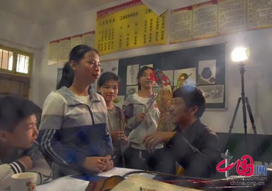 中国网6月4日讯 “咚咚锵锵、咚咚咚呛……”走进湖南宁乡市坝塘中学校园,一阵阵敲锣打鼓的声音,从学校的音乐教室里传出,走进一看,原来是该校皮影戏艺术社团的同学们,饶有兴致地在传承人万铁军和学校老师的悉心指导下,认真的在学习皮影戏。
