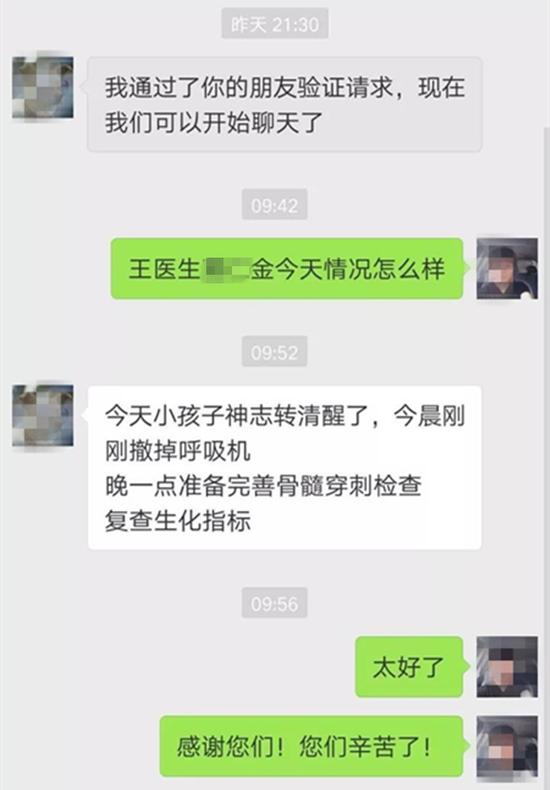 小金外公10月22日送来了3000元,但仍是杯水车薪。在欠交费用的情况下,医院积极予以治疗。10月23日下午,志愿者代表前往医院,及时将善款为小金续交了1.5万元医疗费。小金的爷爷急得两天没有吃饭,几近崩溃。他40多岁失去妻子,又遭遇白发人送黑发人。如今面对孙子生命垂危,他告诉志愿者:“如果小金挺不过来,我不知道以后该怎么办。”看到志愿者送来救命款,小金状态好转,老人终于有了笑容。10月24日,他又回家筹款去了。据了解,小金今年没有续农保,在医院账户上显示为自费。护士长郭盛梅称:“我们会尽力予以照顾,减免小金的治疗费用。”而志愿者们也在继续想办法,要为小金来一场生命的拔河。